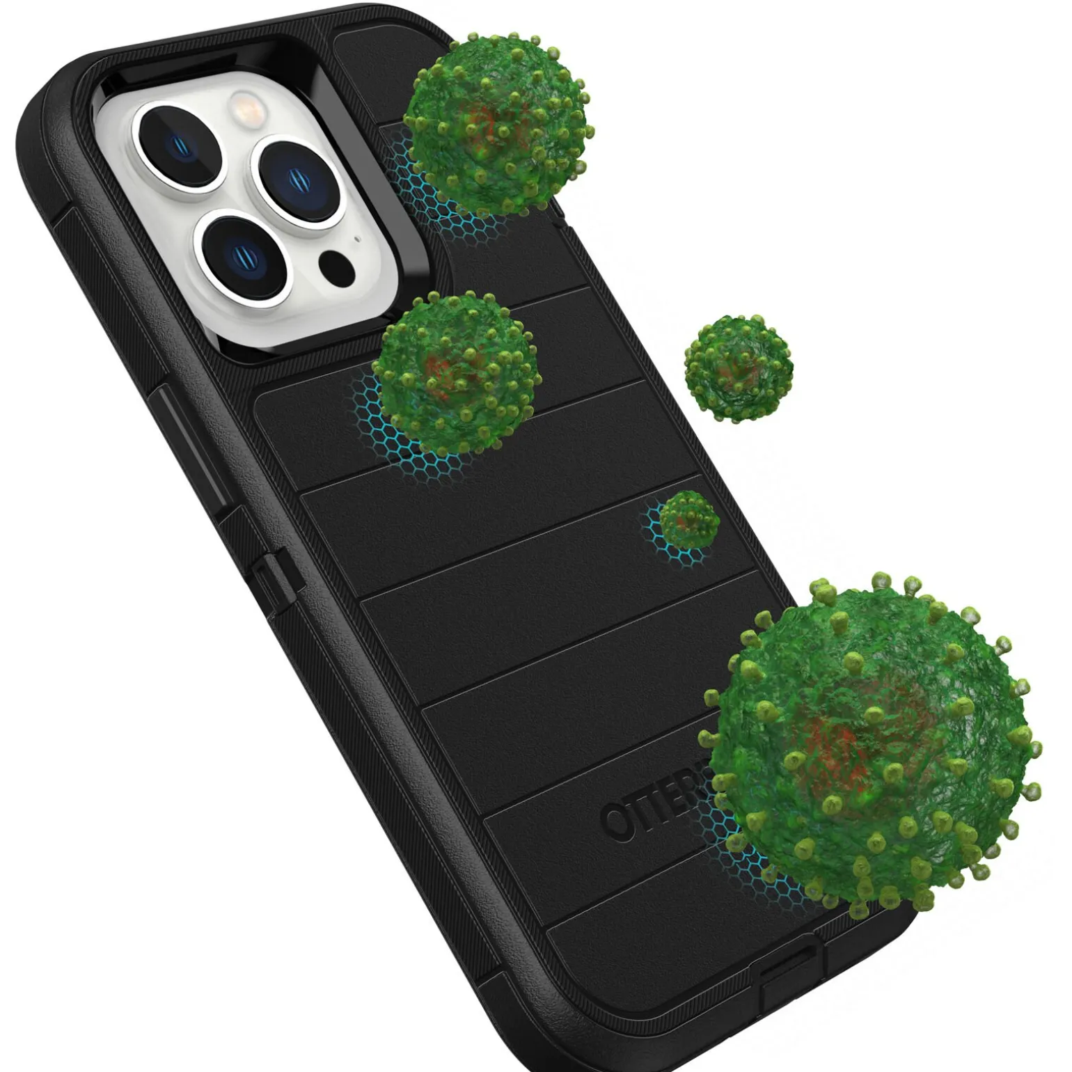 Defender Series Pro is the rugged protective iPhone 13 Pro case that delivers advanced defense for your device. Defender Series Pro integrates a silver-based antimicrobial additive into the case that helps inhibit microbial growth and defends the case exterior against many common bacteria.* Weaving the additive into the case materials ensures it keeps protecting your case 24/7/365 and outlasts heavy use. The premium rugged design displays clean lines with a comfortable grip. Plus, the raised edge offers added camera and screen defense.