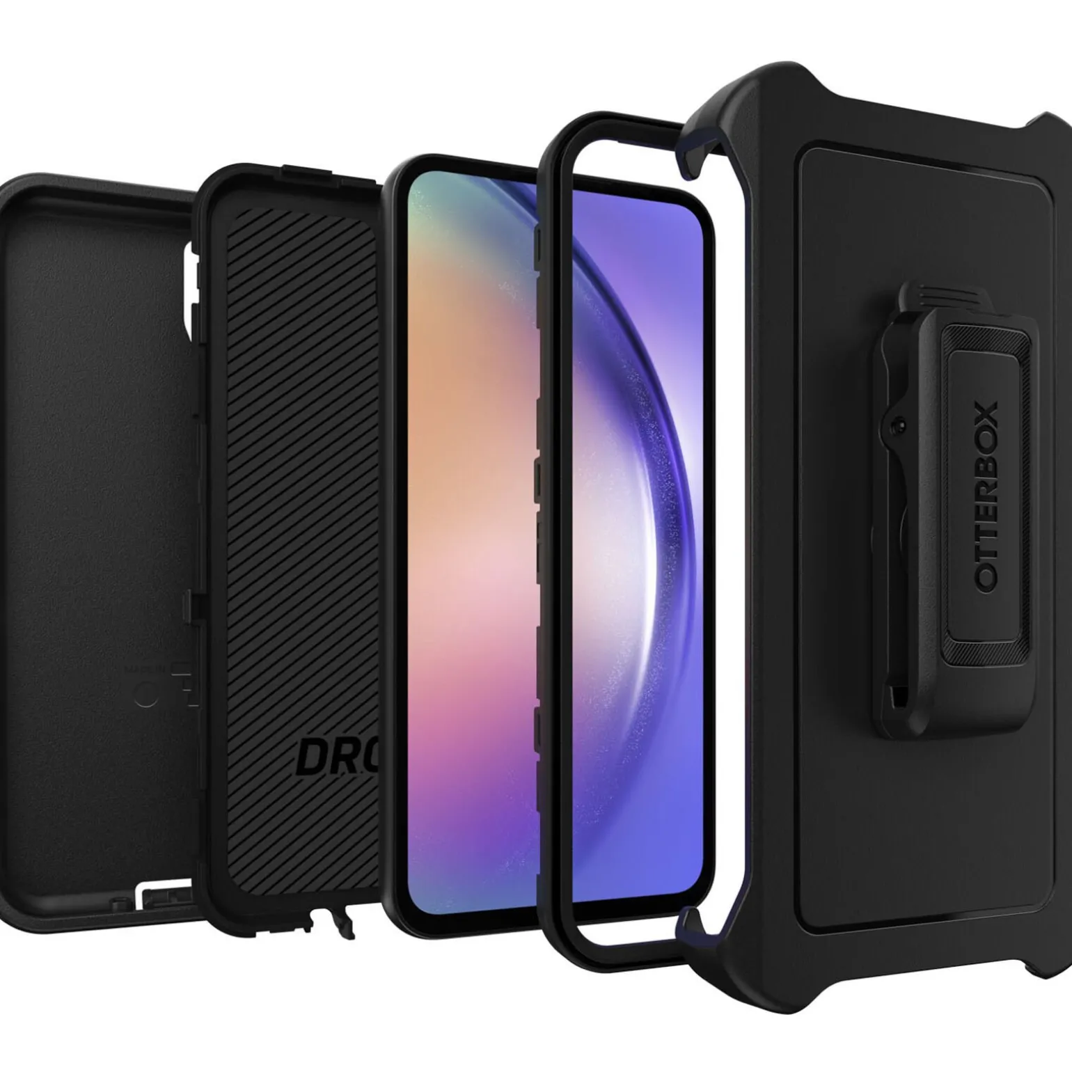 Legendary durable Galaxy A54 5G case, Defender Series with a multi-layer construction guards your device from serious drops, dirt, scrapes and bumps. Plus, the included holster does double duty as a belt clip or hands-free kickstand.