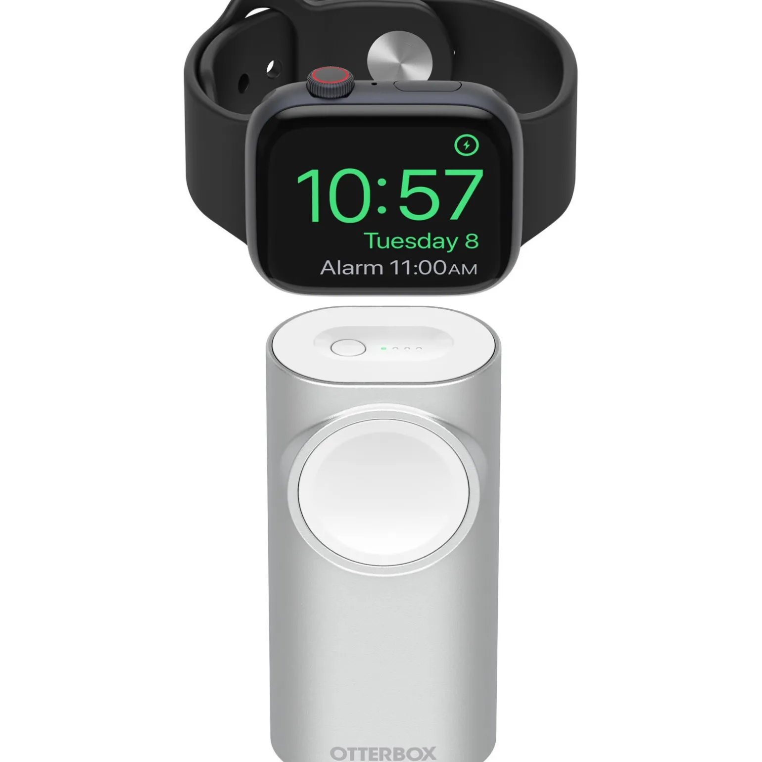 The portable Apple Watch charger is convenient to carry everywhere and sets up in an instant. Simply stand the 3k mAh power bank on its end and rely on the magnets to hold your Apple Watch duringcharging. Set your watch on Nightstand mode while it’s on the power bank for a dependable alarm clock.