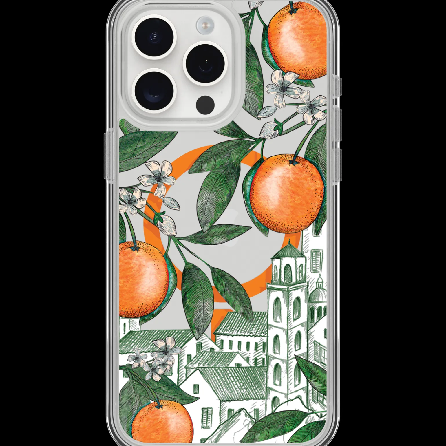 Jet set to the sun-drenched shores across the pond with Symmetry Series Clear for MagSafe Vintage Vacation. Featuring bursts of citrus and Mediterranean motifs, these designs give off cabana vibes. This thin iPhone 15 Pro Max case delivers serious drop protection in a profile that’s surprisingly slim.
